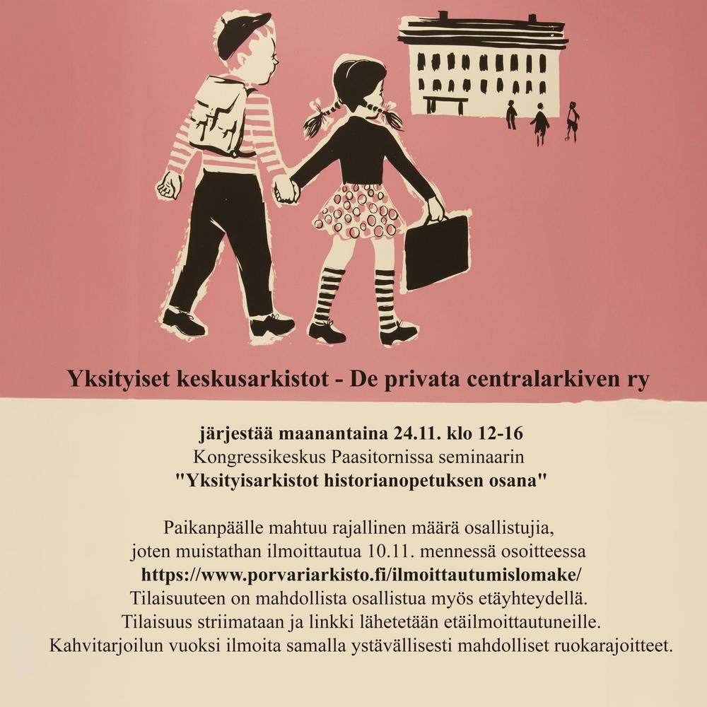 YKA-seminaarin "Yksityisarkistot historianopetuksen osana" ohjelma on julkaistu ja ilmoittautuminen avattu. Ilmoittautua voi osoitteessa: https://www.porvariarkisto.fi/ilmoittautumislomake/