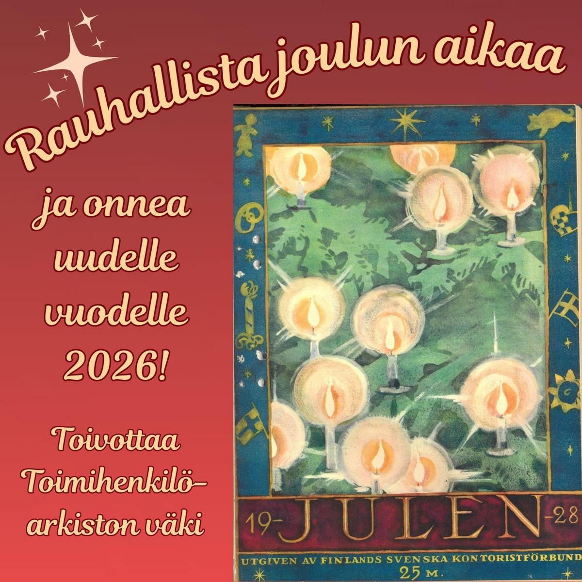 Rauhallista joulun aikaa ja onnea uudelle vuodelle 2026, toivottaa Toimihenkilöarkiston väki.